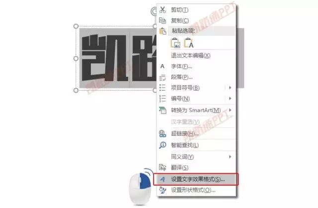 步驟一:選中輸入的文字后【右鍵】,在彈出的右鍵菜單中選擇【設(shè)置文字效果格式】。
